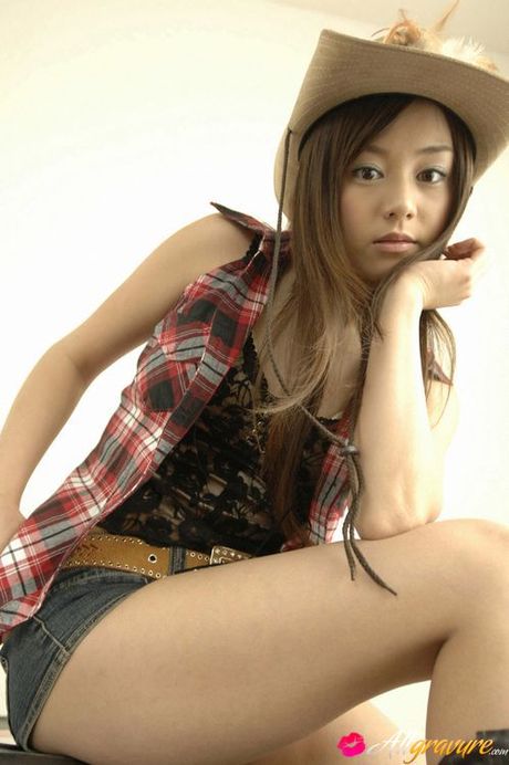 All Gravure: Adorable asian cowgirl tempts in her boots and jean shorts
