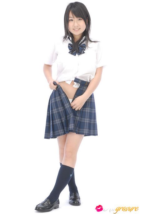 All Gravure: Adorable busty asian school girl lifts up her plaid skirt
