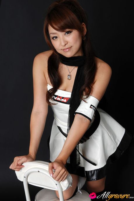 All Gravure: Adorable energetic asian babe posing in a short mini skirt