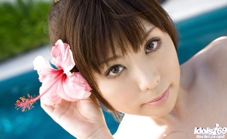 Idols 69: Adorable japanese cutie Aya Hirai in fancy skirt showing her beauty near the pool