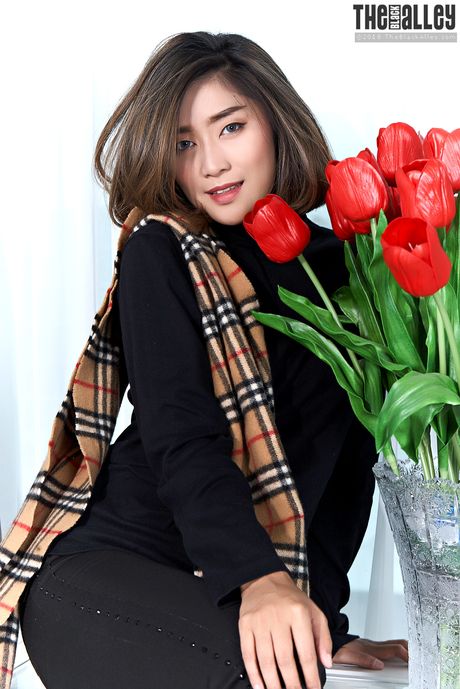 The Black Alley: Amateur Asian babe Apple strips and shows her hairy pussy up close