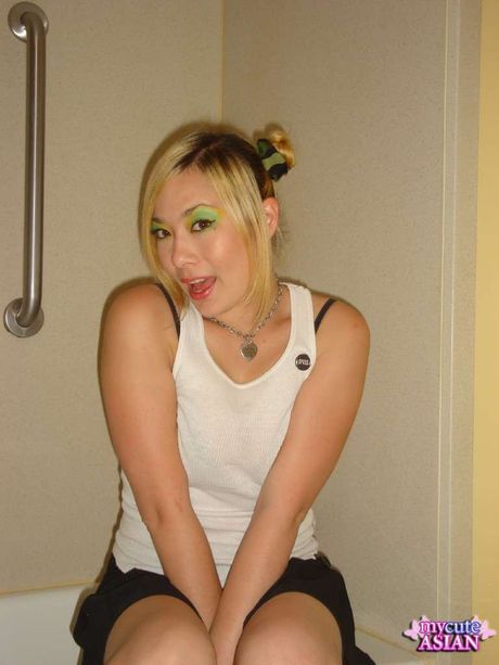 My Cute Asian: Amateur Asian girl with tiny tits toying her pussy in the bathroom