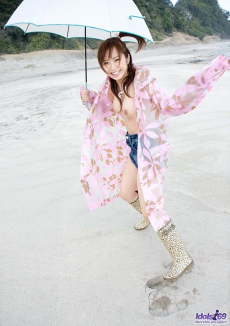 Idols 69: Amazing Asian babe Namiki strips and shows her hairy pussy on the beach
