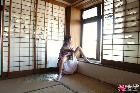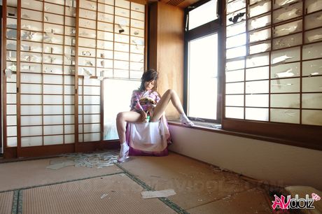 AV Idolz: Amazing Asian teen Chiaki toying her hairy pussy with a dildo in a solo