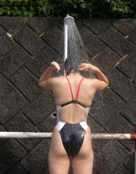 Japan Swimsuit Porn: Asian amateur girl with small tits strips and shows her pussy in a solo