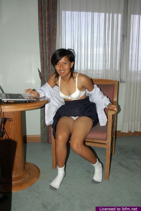 LBFM Addiction: Asian amateur girl with tiny tits strips and poses in stockings