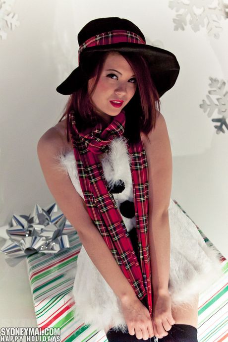 Pink Velvet Vault: Asian amateur Sydney Mai shows her big ass and tits in a Christmas solo