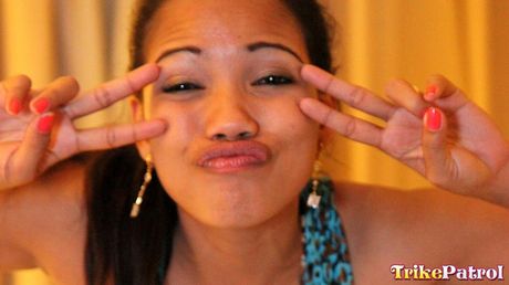 Trike Patrol: Asian babe Vanessa reveals her big racks and hairy cunt in a solo