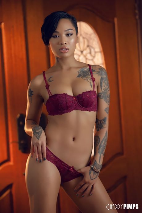 Cherry Pimps: Asian MILF Honey Gold shows her amazing racks and hairy cunt in a solo