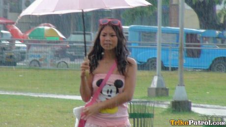 Trike Patrol: Asian mom Nicole gets her feet worshiped and her pussy fucked outdoors