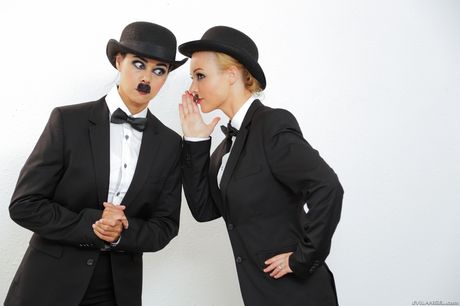 Evil Angel: Asian mommy Dana Vespoli & blonde Kayden Kross play with their big juggs