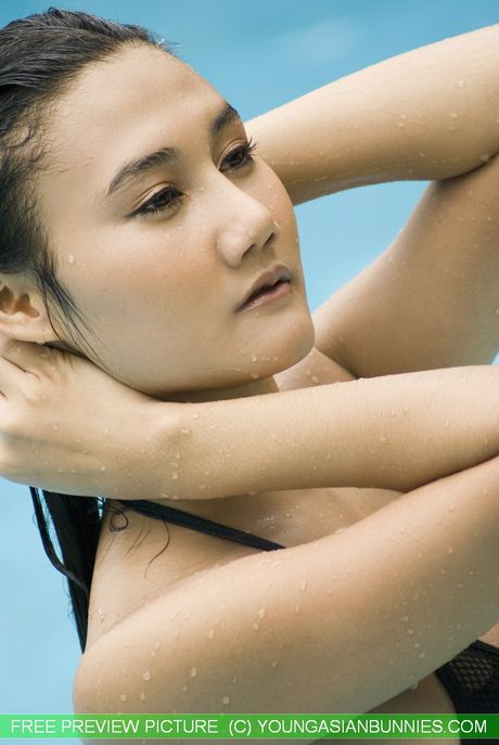 Hot Bunny Promotion: Asian teen Michaela shows her small tits and her hot ass in a pool
