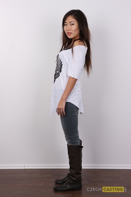 Czech Casting : Asian teen Mira strips and shows her amazing boobs and hairy cunt in a solo