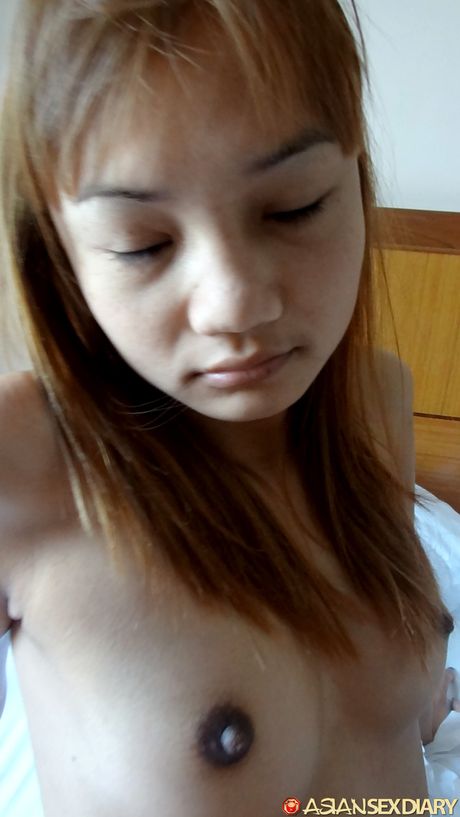 Asian Sex Diary: Asian teen Pim shows her tiny tits and toys her love hole in a solo