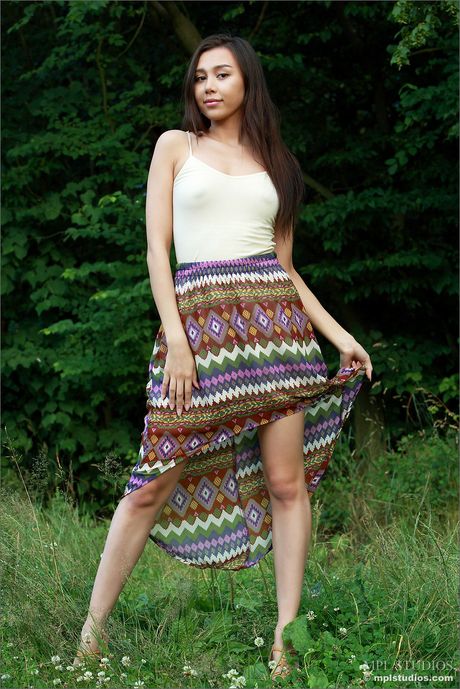 MPL Studios: Asian teen Sakura strips and shows her tiny tits and pink pussy outdoors