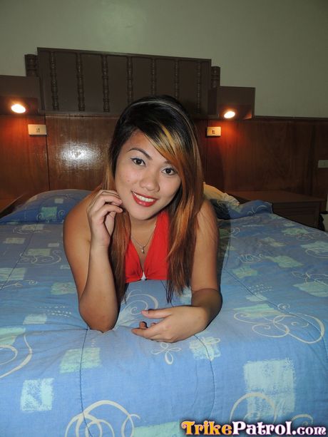 Trike Patrol: Asian teen Shakira strips and shows her tiny tits and pink pussy