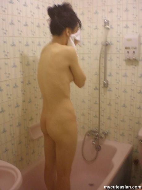My Cute Asian: Asian teen with tiny tits and hairy cunt strips and showers in the bathroom