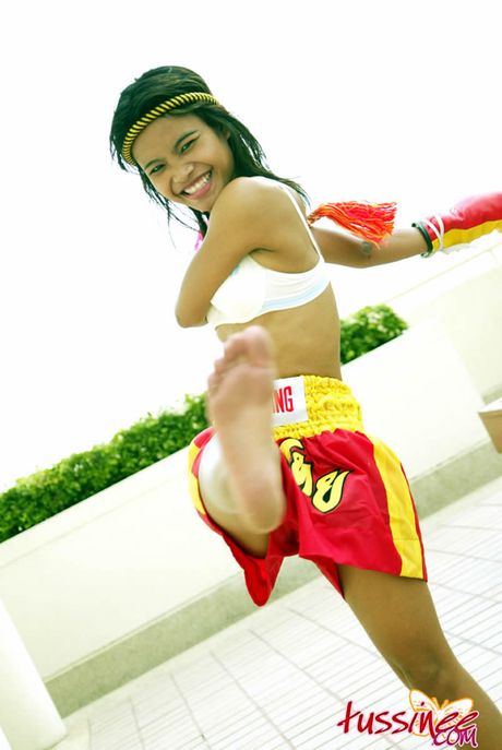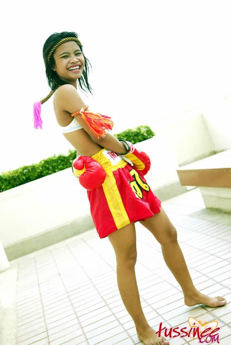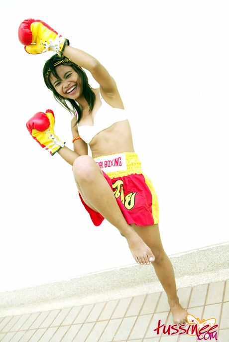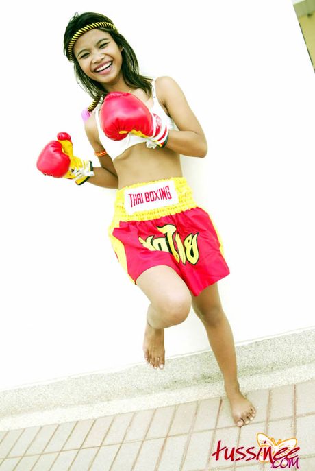 Tussinee: Bangkok teen Tussinee in a sexy Muay Thai boxing outfit