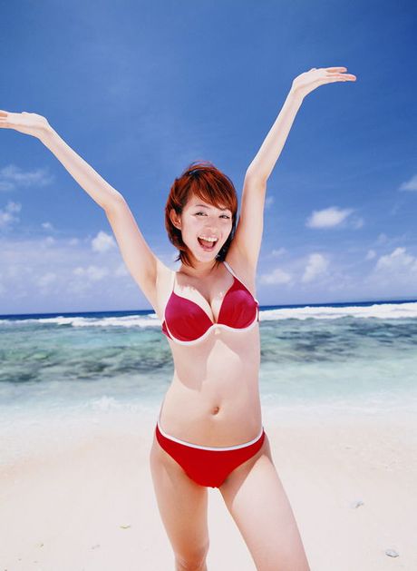 All Gravure: Big breasted asian idol soaks up the rays in her bikini at beach