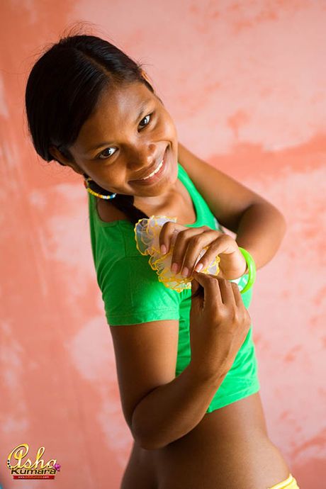Asha Kumara: Brown teen rubs pussy and fondles tittles through bikini