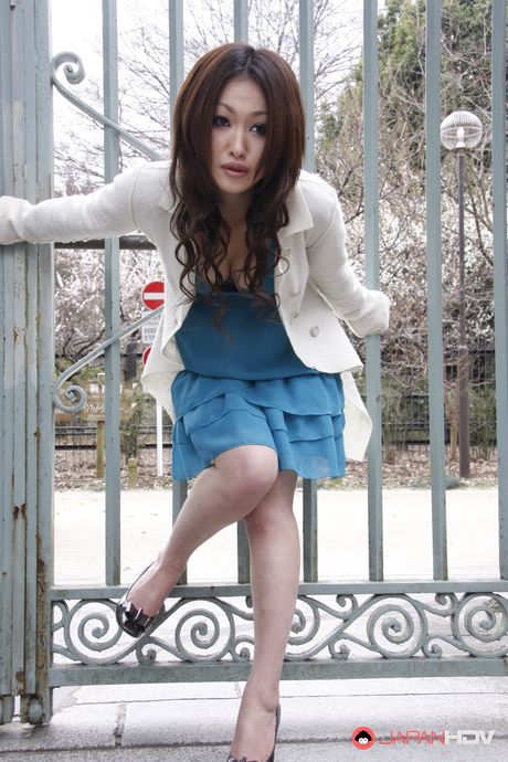 AV Idolz: Brunette Japanese babe Hina Kawamura strips and poses nude in the rain