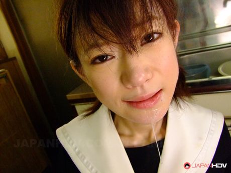 Japan HDV: Cute teen maid Aoba Itou cleans her masters cock on her knees at home