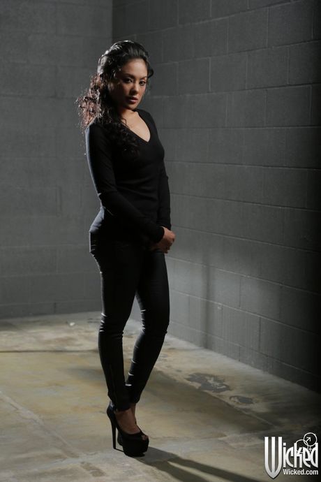 Twistys: Deluxe asian porn star Yasemin Gold in sexy shorts exhibiting her ass and spreading her legs