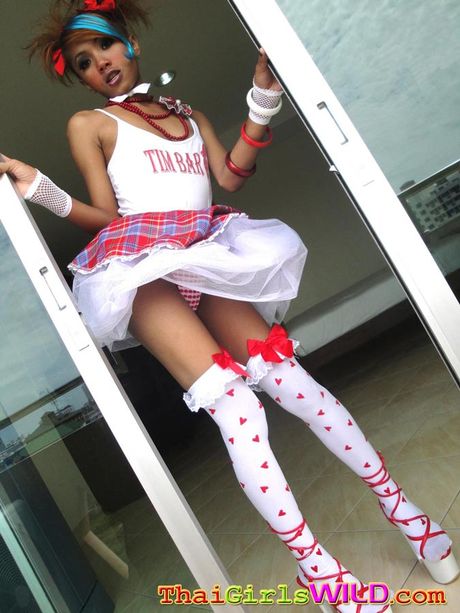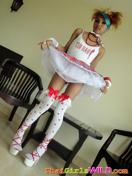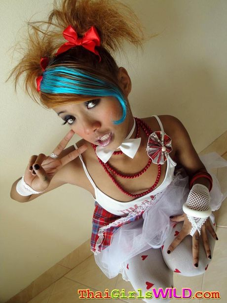 Thai Girls Wild: Emo chick Air exposes her shaved Thai pussy befoee some creampie action