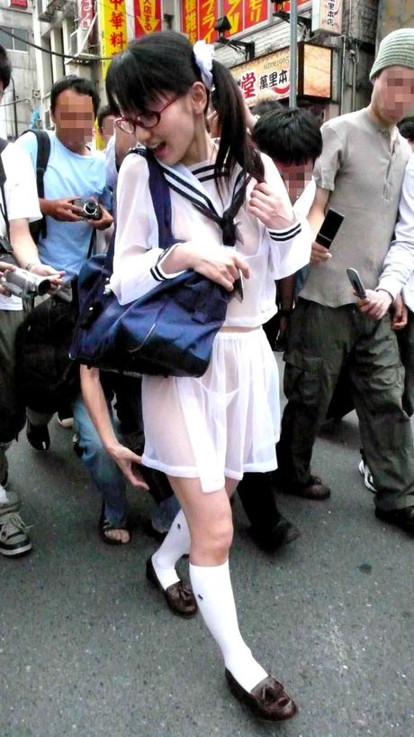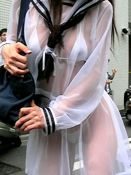 Asian Public Nudity: Horny student love tease men wearing transparent outfit in public