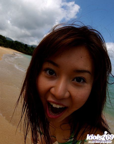 Idols 69: Hot japanese babe Adusa Kyono exposes big boobies and sexy ass at beach