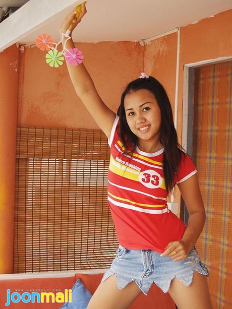 Joon Mali: Joon Mali in jean skirt plays with panties and pinwheel