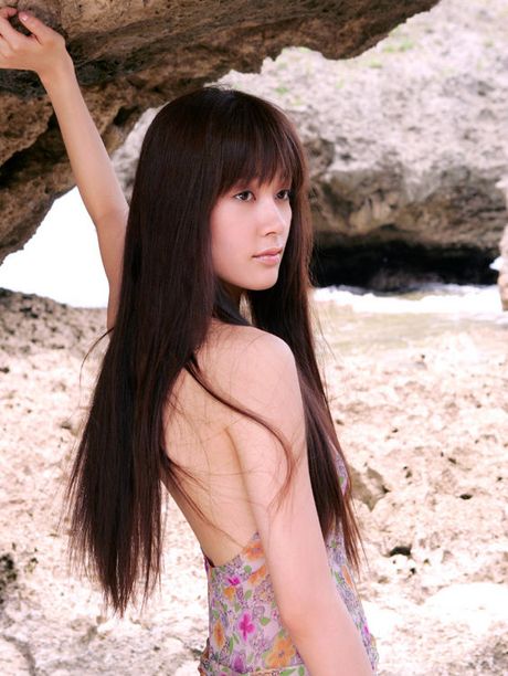 All Gravure: Long haired gravure idol with soft subtle boobs at the beach