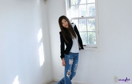 Idols 69: Lovely Asian tramp shows off her great tits and groomed twat with much pleasure
