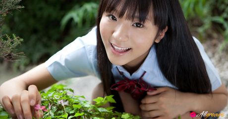 All Gravure: Miho Morita Asian in school uniform loves flowers and fresh air