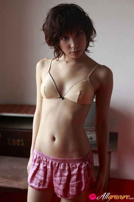 All Gravure: Miu Nakamura shows off her tiny tits in a pink bra and panties