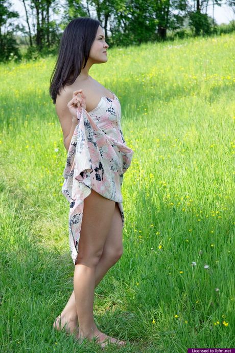 Little Brown Fucking Machines: Noon doesnt wear any panties and she lifts her dress outdoors to show her assets