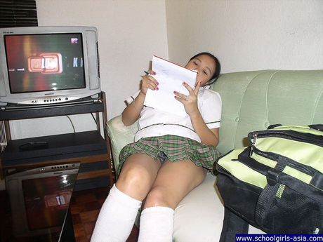 Schoolgirls Asia: Plump schoolgirl stripping and spreading her pussy lips to show some pink