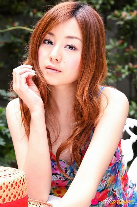All Gravure: Red headed asian cutie posing in a floral printed dress