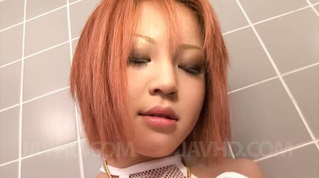 AV Tits: SARA Asian teases her big cans and pussy with shower over fishnet