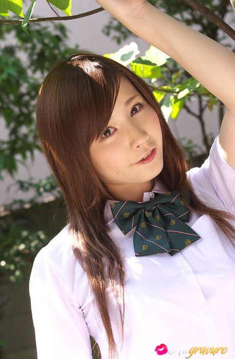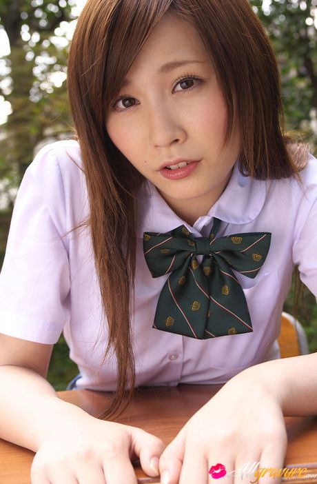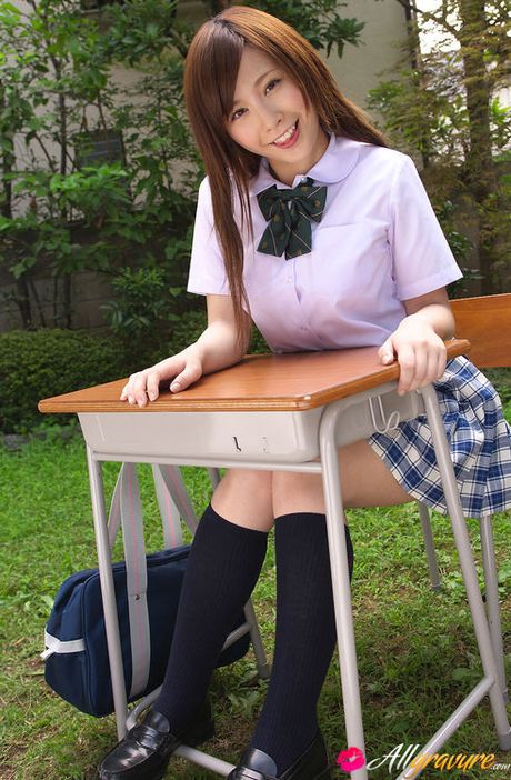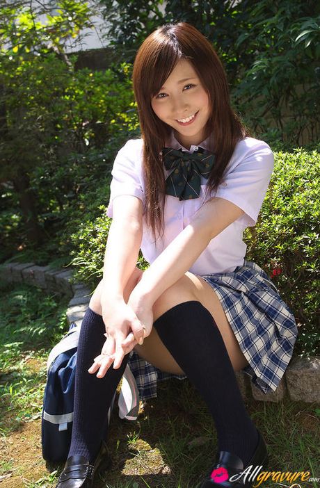All Gravure: Schoolgirl Iyo Hanak poses at the open air in sexy skirt