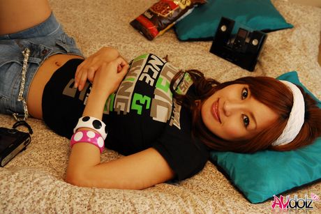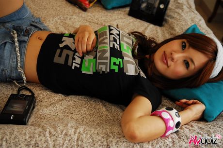 AV Idolz: Sexy Asian teen Mecumi strips and shows her perfect tits and ass