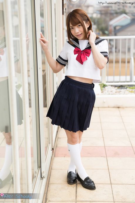 After School: Sexy Japanese schoolgirl Mari Rika strips and shows her hairy pussy
