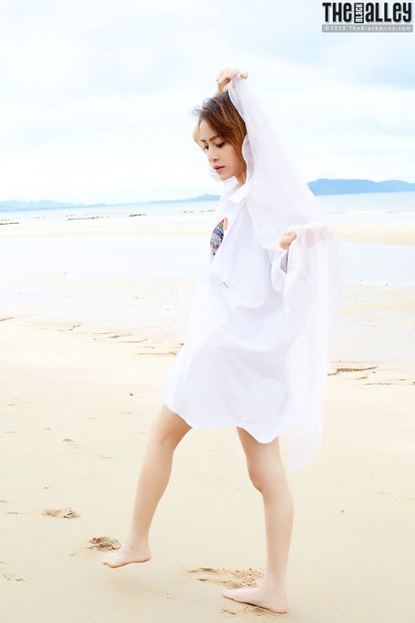 The Black Alley: Super hot Asian Eileen strips off her bikini and presents her hot ass on the beach