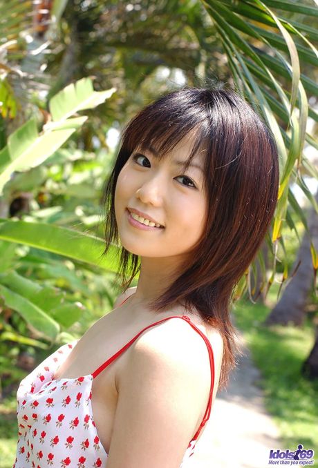 Idols 69: Superb Asian babe Saki Ninomiya strips and shows her tiny tits and pussy