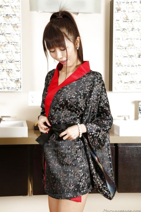 Nuru Massage: Superb asian Marica Hase baring small tits and sexy ass in the bathroom