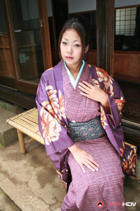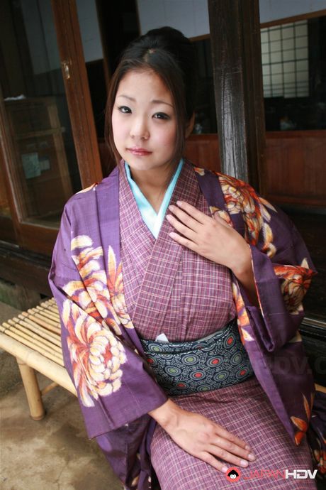 Japan HDV: Sweet brunette in a purple kimono wants to show her fine twat