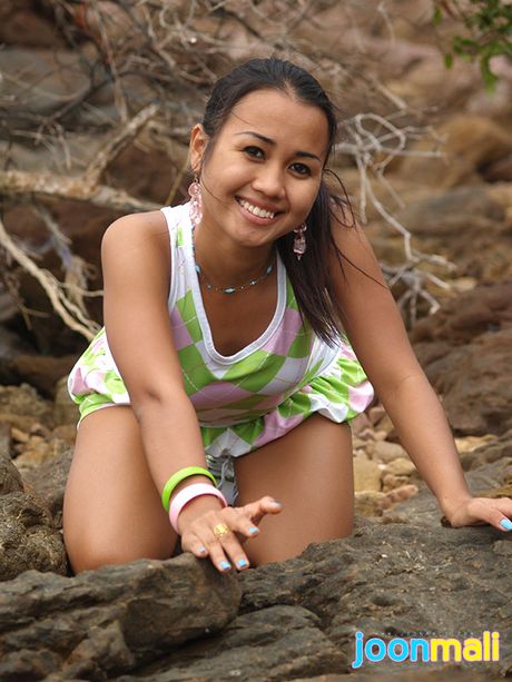 Joon Mali: Teen with almond eyes lifts dress and slips panties down