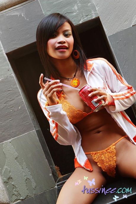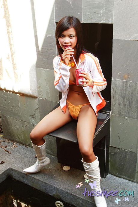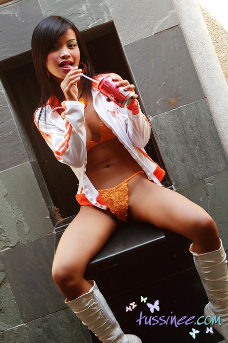 Tussinee: Tussinee posing outdoors sucking on a straw