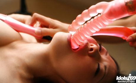 Idols 69: Very attractive japanese Suzune Toujou reveals big hooters and loves sex toy