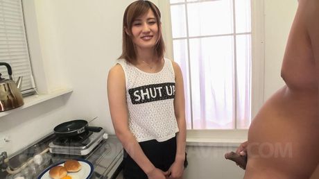 Ferame: Yumi Maeda Asian doll gets cum in mouth after cooking breakfast